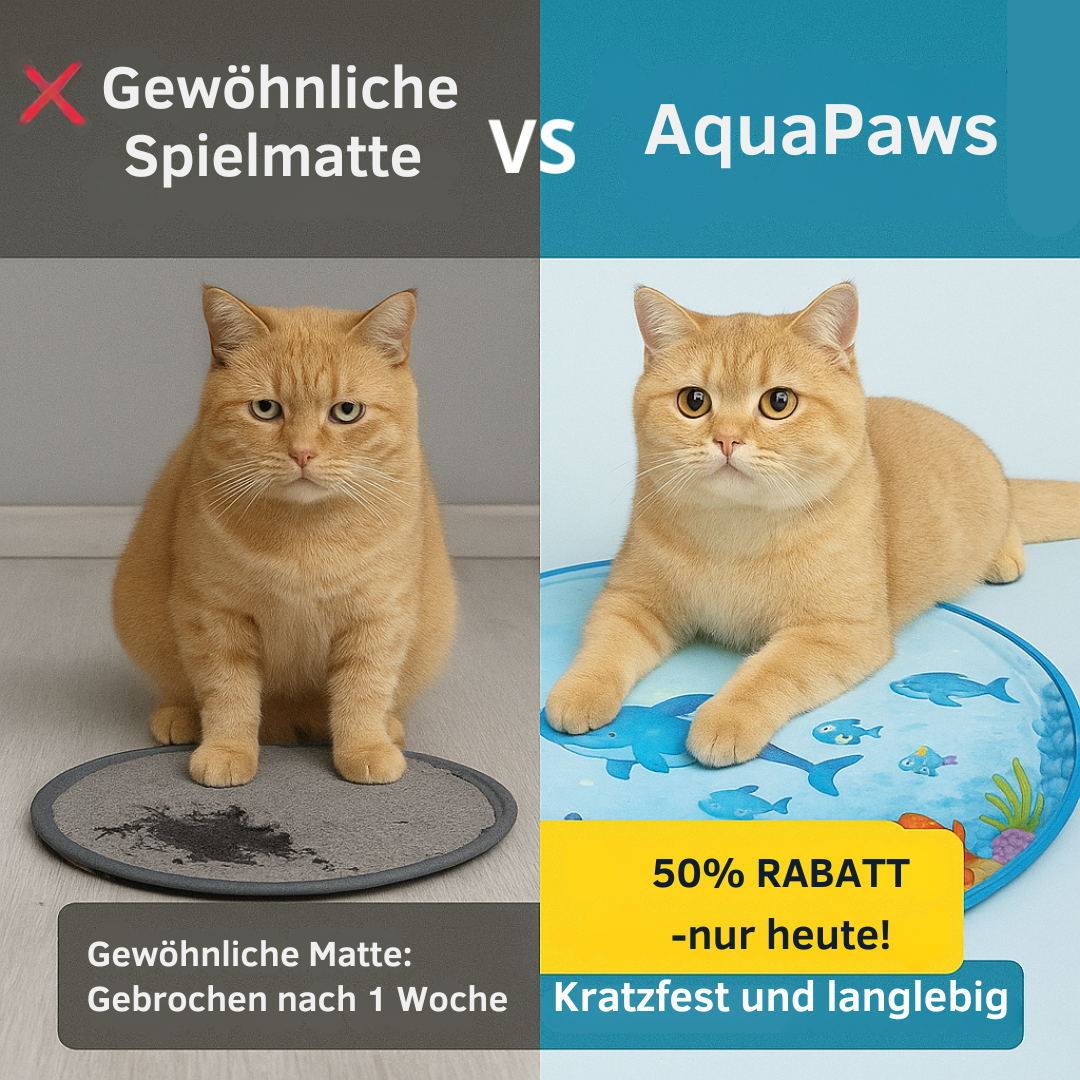Lass deine Katze nicht inaktiv und unterfordert bleiben. Dies führt oft dazu, dass deine Katze ein langweiligeres, schmerzhafteres und kürzeres Leben führt. Das verdient deine Katze nicht! Sie verdient es, jeden Tag ein aktives Leben zu führen! Deshalb haben wir die AquaPaws™ Spielmatte entworfen! Mit ihrem bewegenden Wasser werden Katzen verrückt danach, und sie sind stundenlang unterhalten! Die AquaPaws™ Spielmatte bietet deiner Katze körperliche und geistige Stimulation jeden Tag, damit deine Katze glücklich leben kann!