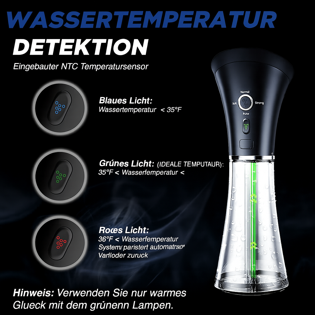 - 🌡️ NTC-Wassertemperatursensor – vermeidet zu heißes oder kaltes Wasser