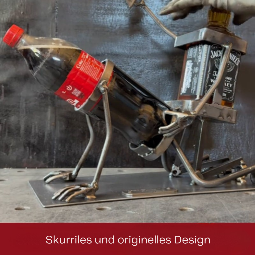 Dieser stilvolle und düster-humorvolle Totenkopf lässt es so aussehen, als ob die Flasche "geritten" wird – wie ein wilder Bronco, was eine lustige und unerwartete Wendung in der Flaschenpräsentation bietet.