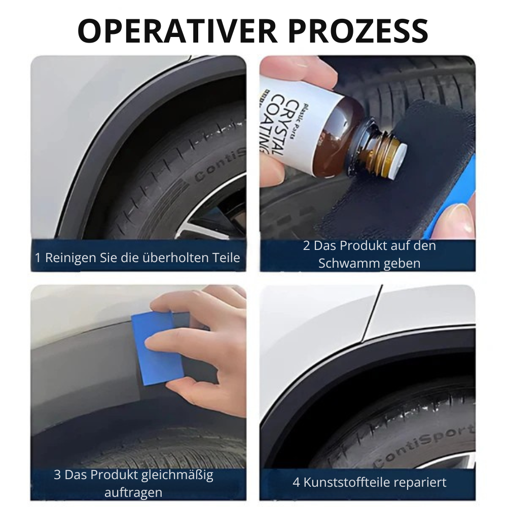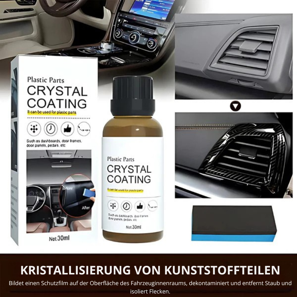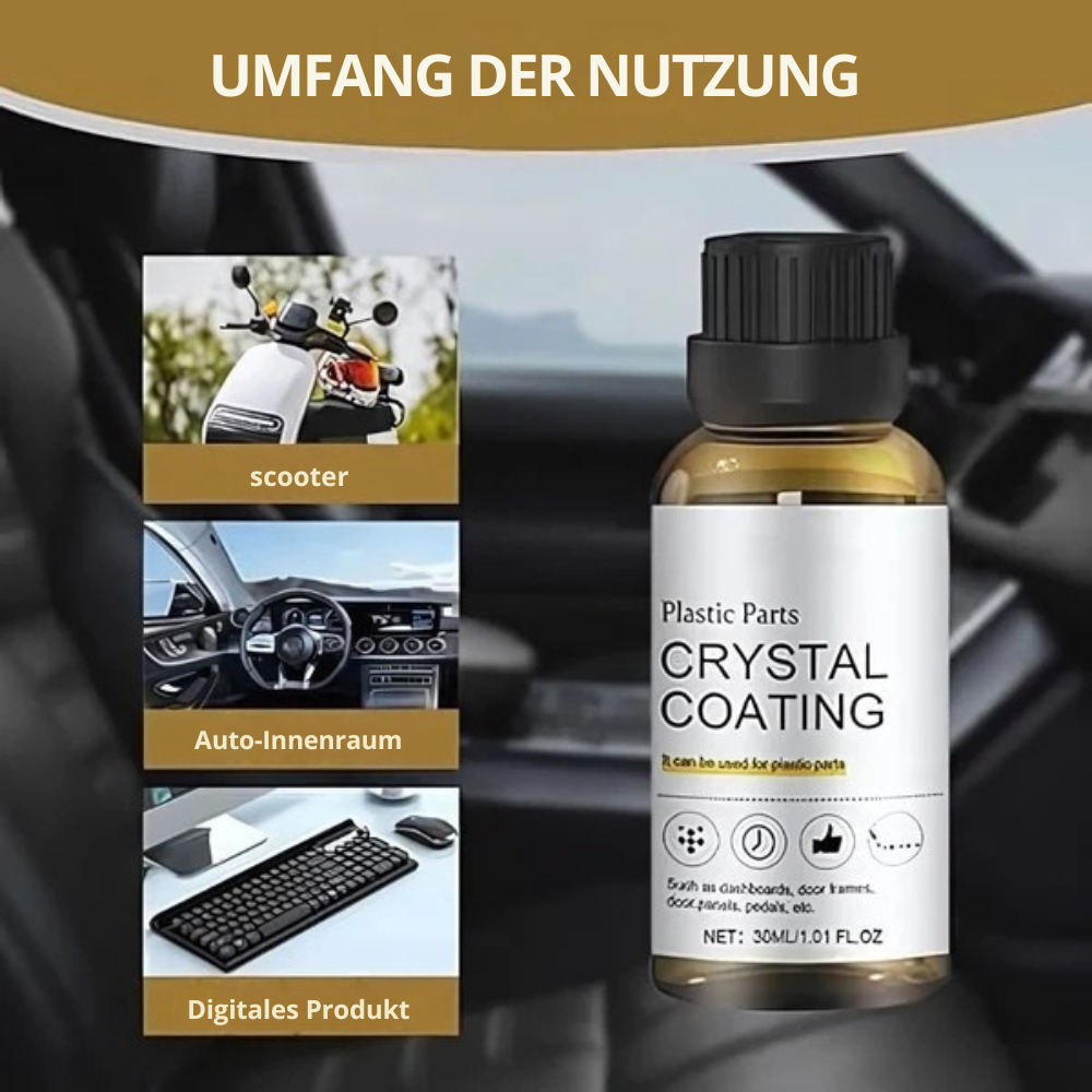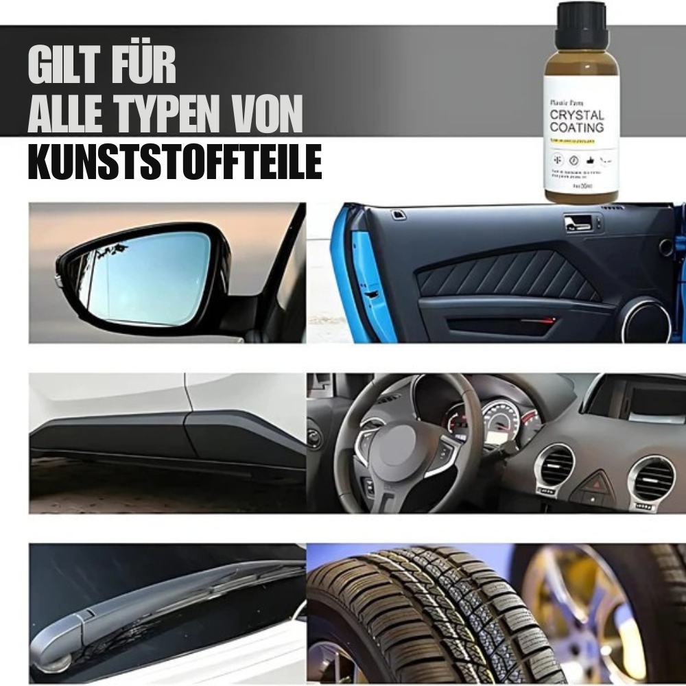 Sind die Kunststoffteile Ihres Autos stumpf und verfärbt? CrystalCoat ist die Lösung! Mit einer speziellen wissenschaftlichen Formel stellt CrystalCoat das ursprüngliche Aussehen der Kunststoff- und Gummiteile Ihres Fahrzeugs problemlos wieder her, ohne sie zu beschädigen. In nur wenigen Minuten sieht Ihr Auto wieder wie neu aus!