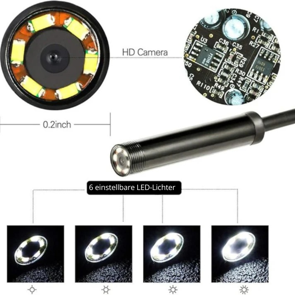 Mit diesem wasserdichten Endoskop mit LED-Beleuchtung können Sie schwer zugängliche Bereiche leicht erreichen. Ideal für Hausaufgaben, Autowartung und technische Inspektionen. Holen Sie sich Präzision und Komfort nach Hause!
