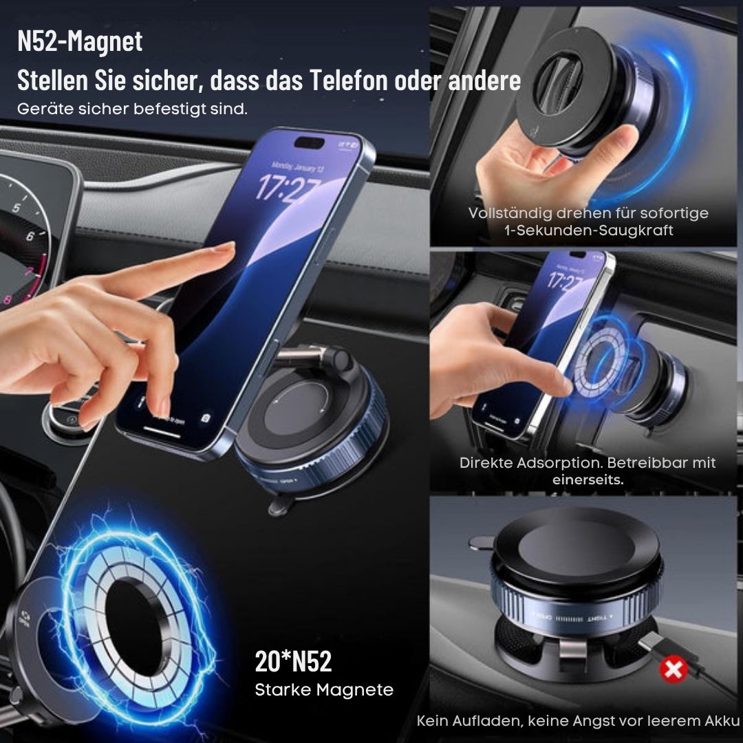 Mit einer extra starken Magnetkraft und einem verbesserten Saugfuß, der fester hält als alle herkömmlichen Modelle, bleibt Ihr Handy genau dort, wo es sein soll – selbst bei Vollbremsungen oder unebenem Gelände.