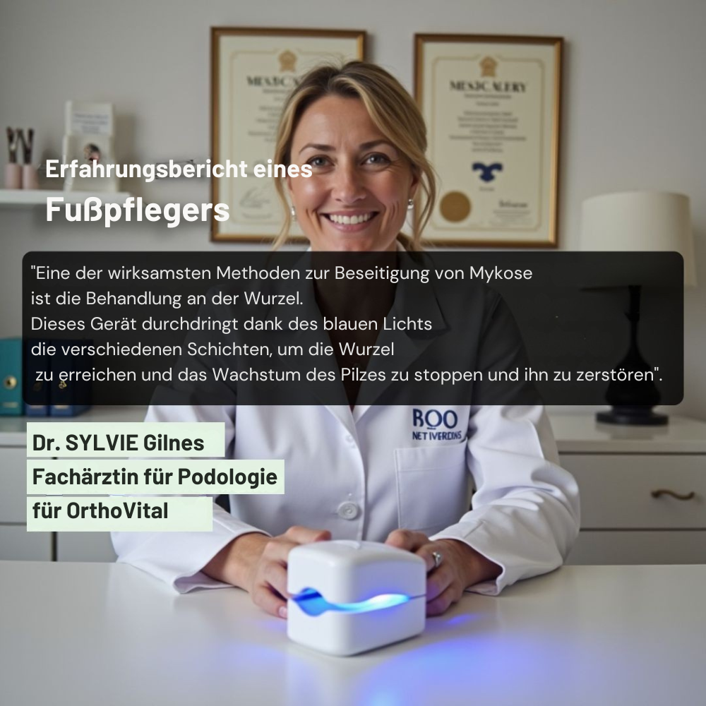 "Meine Nägel waren verfärbt und begannen zu brechen, aber nach zwei Wochen mit NailCure™ sehen sie wieder gesund und stark aus. Ich bin beeindruckt!"