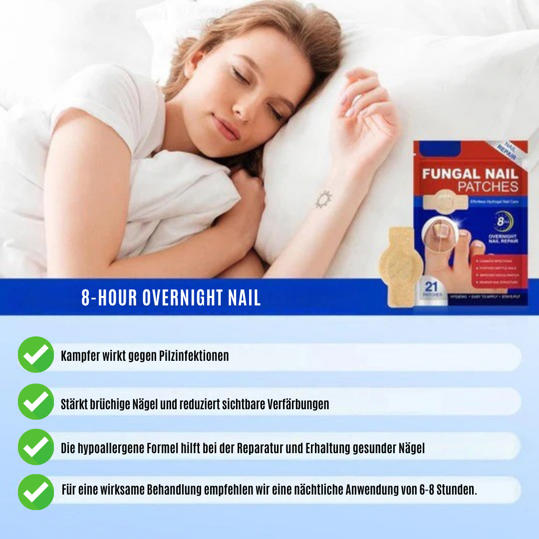 NailRepair™ wurde entwickelt, um dir zu helfen, deine natürlichen, gesunden Nägel zurückzubekommen – einfach, effektiv und ganz ohne starke Chemikalien. Vergiss alles über fettige Salben, aggressive Mittel und schmerzhafte Behandlungen. Dieses fortschrittliche Behandlungsplaster arbeitet für dich, während du schläfst.