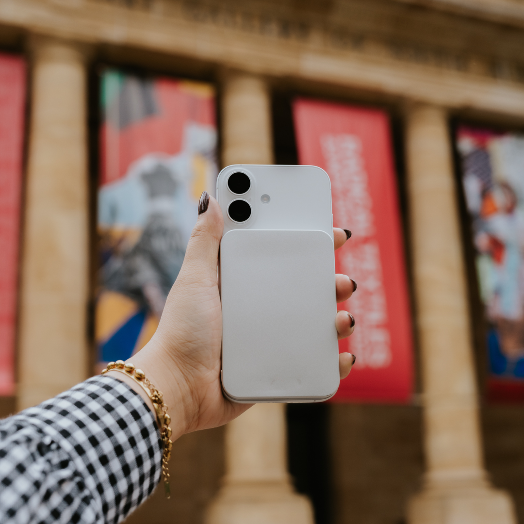 Diese ultradünne Powerbank mit 5000 mAh wird magnetisch auf der Rückseite deines iPhones befestigt. Keine Kabel, kein Aufwand. Nur reine, kabellose Freiheit. Egal, wo du bist.