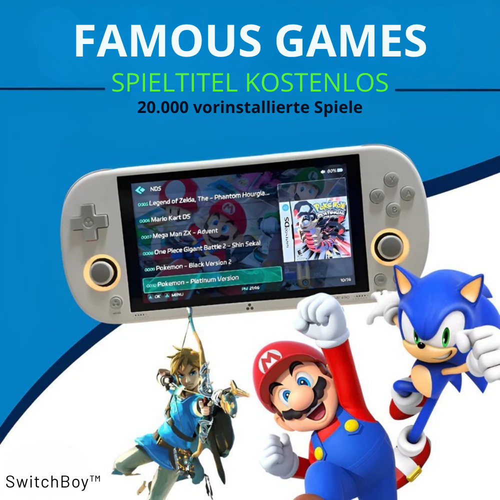 Erlebe zeitlose Hits wie Mario, Pokémon und viele mehr auf dem SwitchBoy. Die besten Retro-Spiele kombiniert für endlosen Spielspaß!