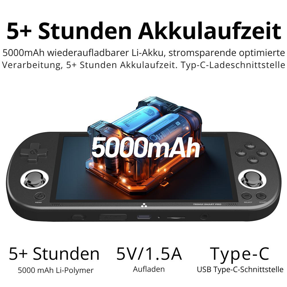 5000mAh Li-Ion-Akku unterstützt 5 Stunden Spielzeit.