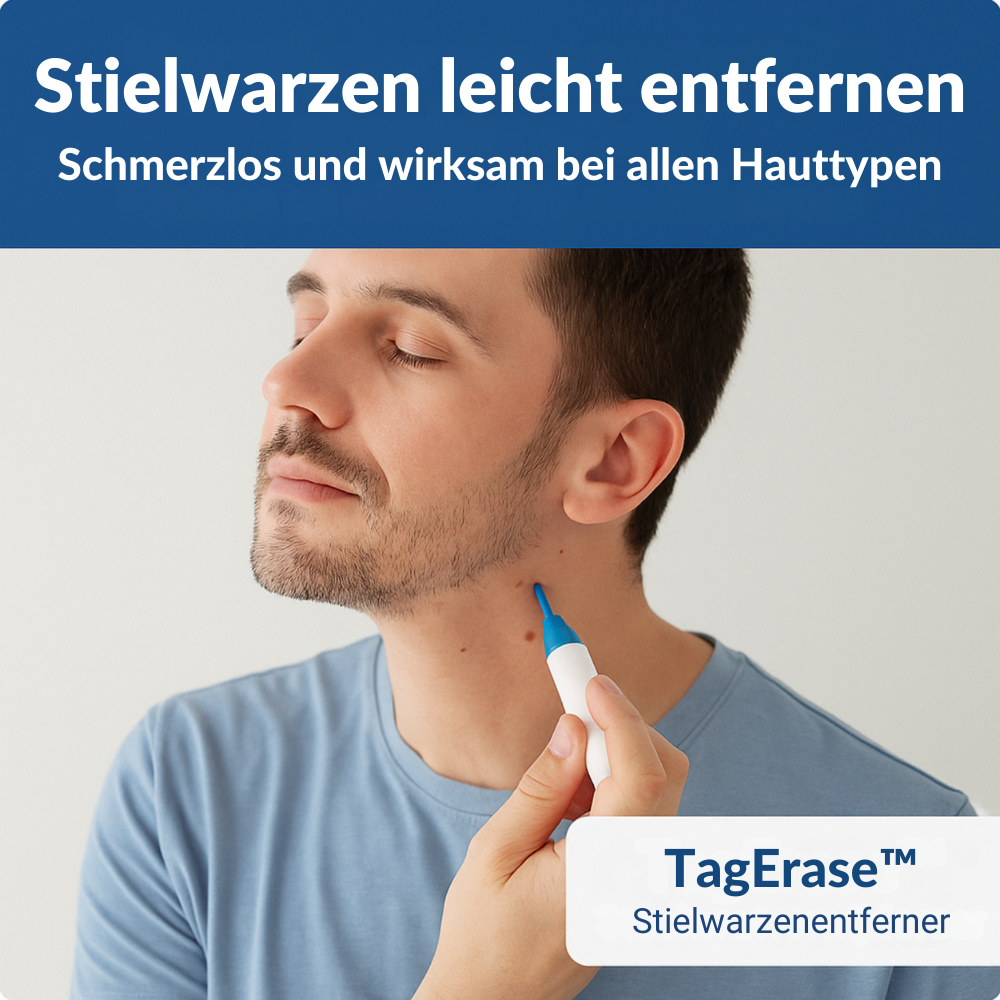 TagErase wurde speziell entwickelt, um Stammwarzen selbst zu entfernen. Ohne Schmerzen, ohne Nadeln, ohne Risiko.